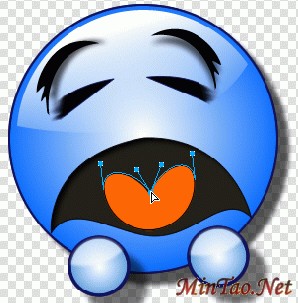 7.再新建一层,同样是利用“钢笔工具”绘制爱哭宝宝的嘴,即然是哭宝宝,嘴角一定要向下。(提示:这里也可以使用“椭圆工具”,然后再利用“自由变形工具”和“部分选定工具”进行调节。