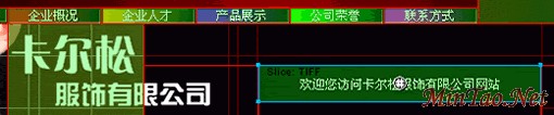 3、 我们使用工具面板中的Slice工具在页面中间绘制一个信息显示切片,我们将在下一步把导航条的每个按钮相关信息显示在这里。