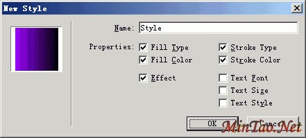 8、 打开Style面板,选中刚才创建的矩形,在Style面板的弹出菜单中选择New Style创建一个新的样式,并命名为MyStyle,如下图: