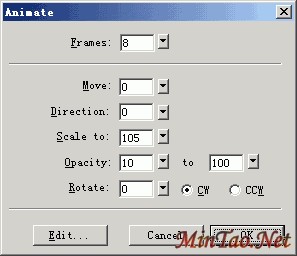 4、 在弹出的设置窗口中设置插入帧数为8,并进行如下设置: