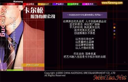 6、 我们现在在Fireworks中作一点小修改,在"卡尔松服饰有限公司"下方增加文字"2001.4"。