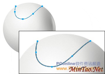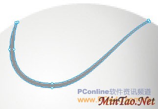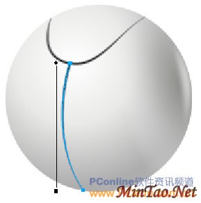现实中的摄像头多由两三个塑料外壳拼装而成,所以在拼装的交接处就难免有些小裂缝。下面我们就来绘制这些小裂缝。先用“钢笔”工具画出摄像头上的一条裂缝路径,如图04。
