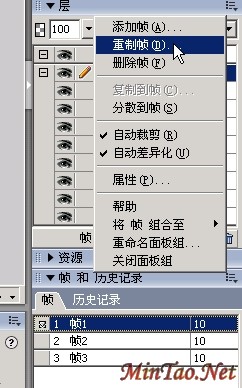 5. 复制第1帧,在第1帧之后,这时创建了第2帧。