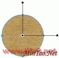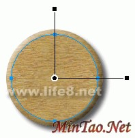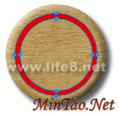 完成后,再用“椭圆形”工具在该圆上画一个直径为127像素的圆,同样以“木纹 3”进行图案填充,并把该圆的羽化值设为3,如图。