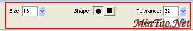 下面在属性面板中设定红眼工具的形状、大小、压力等等参数,这里我们选择圆形,工具大小(Size)为12,容差(Tolerance)为32,压力(Strength)为25。如图1-5