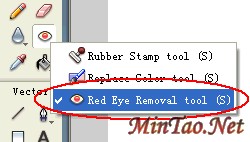 在工具箱中的图章工具下拉菜单中找到消除红眼工具,如图1-4。