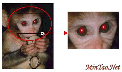 然后在图片上猴子的红眼位置点击鼠标,消除红眼,最后的效果如图1-6,一只可爱有趣的小猴子。
