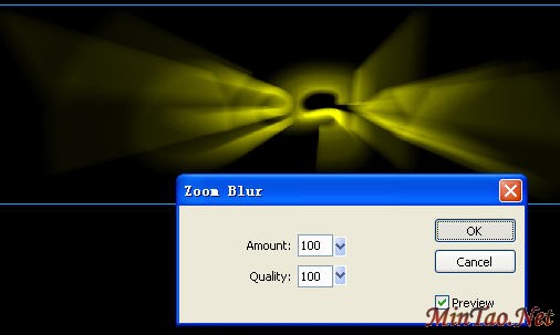 Fireworks MX2004在滤镜特效中增强了模糊功能,除了以前的模糊和高斯模糊特效之外,还增加了动感模糊(Motion Blur)、径向模糊(径向模糊滤镜)、放大模糊(Zoom Blur)三个效果。下面我们使用这几个新特性,制作一个光芒四射的效果。