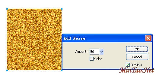 除了模糊效果,2004 版本还增加了添加杂色(Add Noise)的滤镜特效, 有了这个功能我们可以在Fireworks中设计自己的材质了。先画一个矩形,然后添加杂色,数值设定为50。如图8-1。