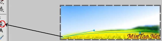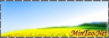 (1)稻田被风吹过的波浪动画。 [a]制作稻田。 先截取或用fw画一条稻田,要求是看上去像稻田(废话),也是弧线型,并增加饱和度(见图5),如图11:(注意1:请将稻田对齐整个logo的底端,而不是边框的底端,理由将在稻田的动画制作中得知;注意2:请将稻田遮掩掉丘陵的一侧,以增强整体构图的协调美,并给文字渐变留下足够的空间。再具体偶就不知道怎么解释了,学美术的应该知道吧。)