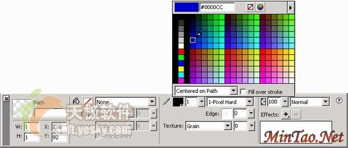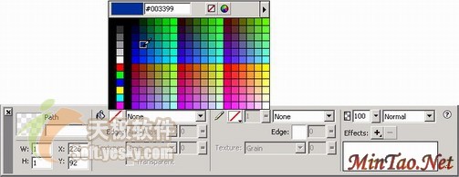 我们还可以通过对象的属性面板对其进行笔触和填充的色彩处理,它们的使用方法和在工具箱上使用色彩基本类似,只是此时的浮动色彩框和使用工具箱时候出现的浮动色彩框稍微有些不同,分别如图11和图12所示。