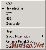 点击右上角的 按钮这时会跳出图14所示的弹出菜单,菜单上部有Fireworks MX 2004色彩模式选项。弹出菜单的下部则是关于面板的一些操作,包括重新组合面板、重命名面板等。