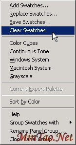 点击色彩样本面板右上角的 按钮,在弹出菜单中选择“Clear Swatches”(清除样本),如图19所示,我们可以快速清除所有的色彩样本。