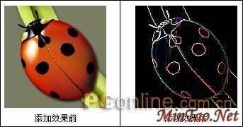 若再留心一下,你或许还会发现,通过“滤镜”菜单为矢量对象添加效果时,会弹出一个提示框,示意使用该操作的同时会将此对象转成位图。而通过“添加效果”按钮为矢量对象添加相同的滤镜效果时,却仍可以保留对象的矢量状态。这也就为我们在使用“滤镜”功能时,是否保留对象的矢量模式提供了选择。但一般情况下,我们都更愿意通过属性栏中的“添加效果”按钮为对象添加滤镜,因为保留对象的矢量状态将会为日后可能需要的重新编辑带来方便。