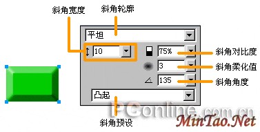 斜角宽度——设置斜面的宽度大小。数值变化从0至35,数值越大,斜面的宽度也就越大;角的