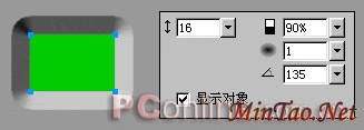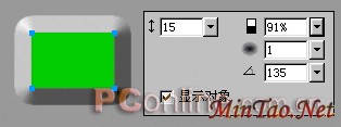 在为图形对象添加该特效时,会弹出一个该特效的设置窗口,通过设置该窗口的相关数值或选项,会在对象的内围呈现出具有立体感的凸起或凹入效果。如图04。