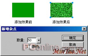 数量——控制在图形对象上产生杂乱像素点的数目。数值变化从1至400,数值越大杂点也就越多、越明显;