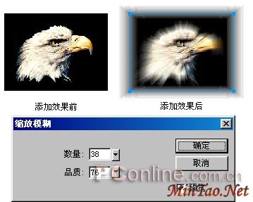 品质——设置模糊效果的光滑度。数值变化从1至100,数值越高,会导致模糊效果与原来的图像的重复性变低。