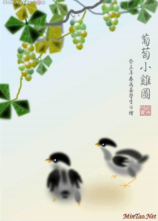 (9)接着绘制小鸡的另外一只脚,并选择所有的对象将它们组合起来,这样就得到我们的小鸡图像了。在我们的国画制作中会利用到。如图12所示。
