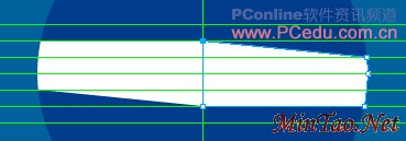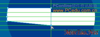 12、使用“部分选定”工具,选中左侧白色图形对象由下角的路径节点,按键盘上向下的方向键,向下方将其移动,使其与水平方向的第6 条辅助线相交为止。