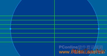 [注]观察“百事可乐”的图标可以发现,位于图标中间位置的白色波浪图形,并非是高度均一的,而是波峰和波谷的位置白色波浪的高度最高,位于两侧的起点和终点高度最低,这样,接下来我们就先在编辑区拖拽出相关的辅助线,以备接下来的白色波浪图形的绘制工作。