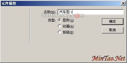 (2) 选中这幅汽车图像,单击【修改】菜单,选择【元件】|【转换为元件】,这时候会跳出元件属性对话框,将这个图形文件命名为"汽车图 1",如图2所示。
