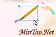 先做一支笔,笔的做法很简单,打开FW,新建200*200透明的图象,然后用矩形工具在上面画二个矩形(笔尖和笔杠),经过使用变形工具,笔就做好了,保存图像待用: