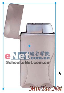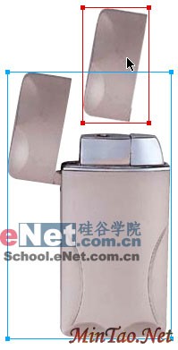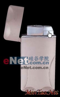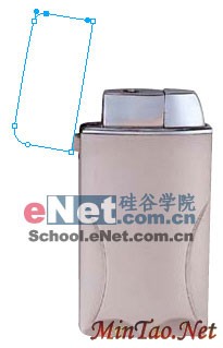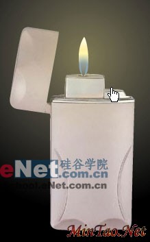 将路径对象与位图同时选中后,使用菜单栏上的“修改——蒙版——组合为蒙版”命令。从而使我们得到一个较精确的打火机外形,如图07。然后再点击菜单栏上的“修改——平面化所选”命令,将这组蒙版对象转成位图。