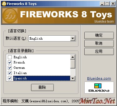 了用于 Fireworks 8 语言切换及删除不用的语言目录。
