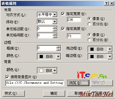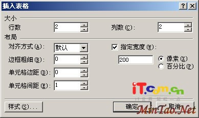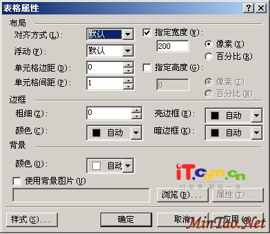3、同时将表格的“宽度”设置为200象素,再分别将边框粗细、单元格边距设置为0,而单元格间距设置为1; 4、用鼠标选中插入后的表格,并单击鼠标右键,从打开的右键菜单中,执行“表格属性”命令,这样就能打开如图2所示的参数设置界面;