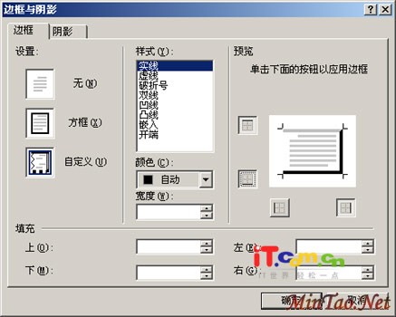 7、要生成表格的立体特效,其实就是让表格在右边框和下边框产生浅黑色的阴影就可以了,因此我们下面的任务就是为表格的右边框和下边框设计阴影效果,此时我们可以借助Frontpage XP中内置的样式功能来轻松实现; 8、返回到图2所示的表格属性界面,用鼠标点击该界面中的“样式”按钮,这样就能打开一个修改样式的设置界面,在这里我们继续单击“格式”按钮,从打开的下拉列表中选中“边框”选项,随后我们就能看到如图4所示的“边框与阴影”设置窗口了;