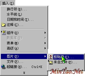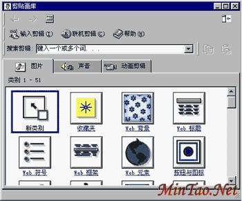 您可能说,我不会画画,插入图片容易,可是编辑图片就不容易了。没关系,FRONTPAGE自己带有许多剪贴画,你可以把它们插入到自己的网页。