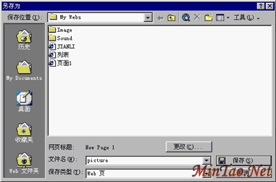 在“另存为”对话框中输入新的web页文件的名字,单击“保存”按钮。