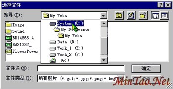 在默认情况下,FRONTPAGE认为你要插入的图片总是放在你建立的站点的目录或它的子目录下的。可以说,站点就是一个目录。我们把编辑的许多网页文件放在同一个目录下,我们称这个目录为站点的主目录。这些网页引用的图形一般也放在这个目录下。当然,我们也可以在这个目录下建立其他的子目录,再把所有的图形放在子目录里。所以搜索下拉列表只允许在主目录和主目录下的子目录进行选择。