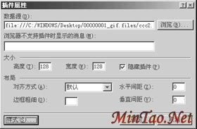 点击“插入”菜单,然后选“高级”中的“插件”(如图1),这时会出现“插件属性”对话框,这里的设置就容易多了(如图2):