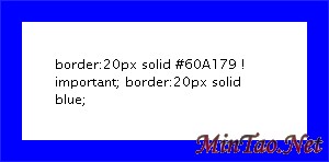 .colortest { border:20px solid #60A179 !important; border:20px solid #00F; padding: 30px; width : 300px; }