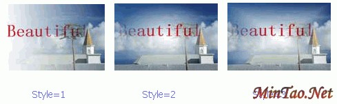 这段代码产生的效果如左下图所示,右面的两幅图分别是把Alpha中的Style参数值为2和3后的效果,点击缩略图可放大。