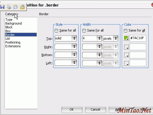 点击OK后,会弹出具体的效果设置,打开其中的border标签,进行如下的设置: