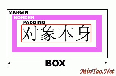 样式表规定了一个容器BOX,它将要储存一个对象的所有可操作的样式。包括了对象本身、边框空白、对象边框、对象间隙四个方面。