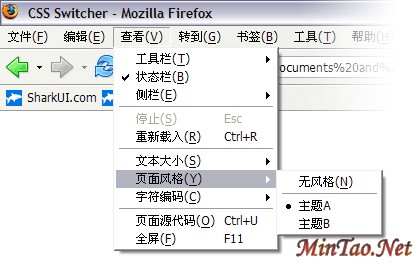 就这么简单,现在你就可以用Firefox来“换皮”了。IE?IE没这个功能……MS就是这么拽,W3C“明文推荐”:要求浏览器提供给用户自己选择样式表的权力,可它就不这么干。幸运的是这件事也不是太难杂,咱就代劳一下吧。