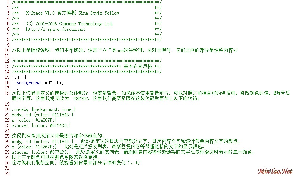 X-Spaces个人空间的模板是基于Div+CSS技术的构建的,修改模板其实就是修改CSS的属性值。在修改模板中,有许多的术语,例如:CSS、HTML、DHTML、XHTML等等,在你学习这篇入门教程之前,我们就来对CSS进行一个简单的了解。