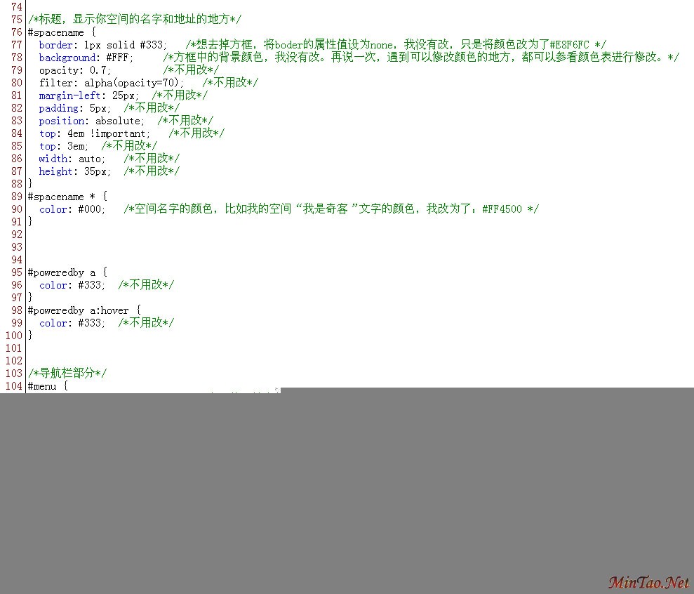 所谓Div即层,CSS就是样式表的简称,DIV就如同一个房间的构架,它是用来定义我们这个空间有多少个房间,每个房间的大致用途的,而CSS,它就如同具体的装修方案。也就是说,我们的空间如同一个大楼,即使提供的房间都是同一样式,即DIV都一样的,只要我们能制定出不同的装修方案,那么我们每个人的空间都能保持自己的个性。之所以采用这种方式,是因为这样能够实现简单的样式定义,从而简化源代码,方便的实现样式的引用!CSS用来控制DIV的显示形式、位置等,这样做的好处是灵活、简便、方便维护。 有了以上的了解,你对于CSS应该有了一个基本的认识,那么接下来,我们就要进开始修改模板了!