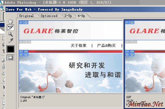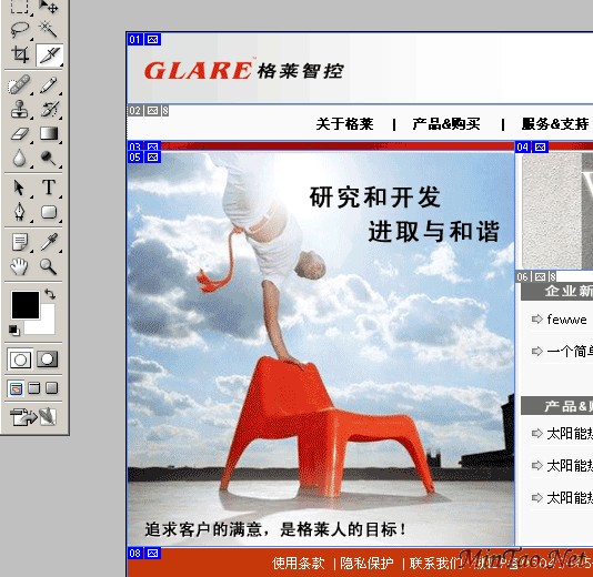 1、打开photoshop cs2 ,打开设计出的网站首页。用切片工具切好。