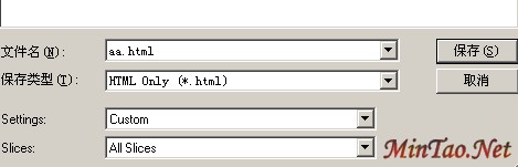 4、点OK保存并关闭设置窗口,在Save for Web窗口中点Save按扭,在保存类型中选择Html and Images,随便输入一个文件名,点保存。