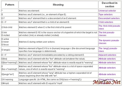 在CSS2.1中的选择符语法见下图,由语法形成了各种选择符。