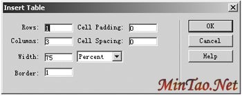 建立主菜单栏新建页面,执行菜单“Insert/Table”命令打开“Insert Table”对话框,插入一个一行多列的表格,表格列数由你的菜单条目决定,同时设置“Cell Padding”、“Cell Spacing”以及“Border”参数(如图1)。在建立的表格中输入主菜单导航文字,选取表格及文字后,用快捷键“Ctrl+F3”打开其属性窗口,我们可以定义一个字体控制CSS来控制文字属性,调整相关参数。