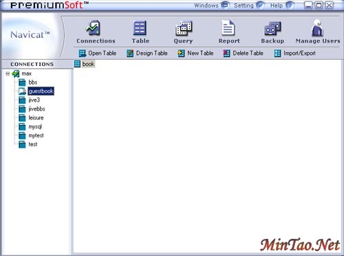 像上次一样,我使用Navicat工具在Mysql中建立了guestbook的数据库,并且建立了留言所使用的book表.