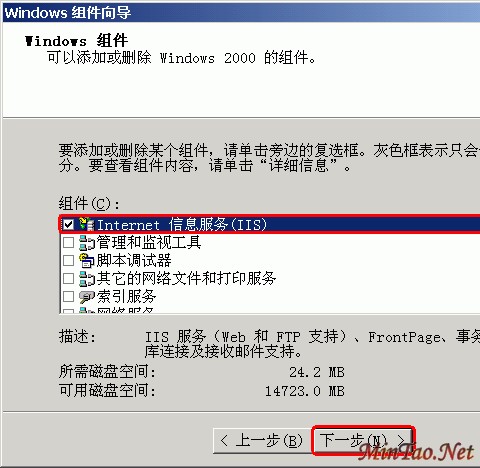 3、从下拉的列表中选择“Internet 信息服务(IIS)”单击“下一步”: