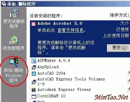 3、单击“添加/删除Windows组件”,打开添加/删除Windows组件对话框: