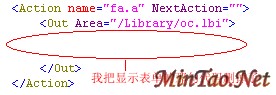 第六步,打开动作文件,我们还是使用这几天来一直在用的a动作,呵呵。我们将显示表单那句代码删掉,如下图: